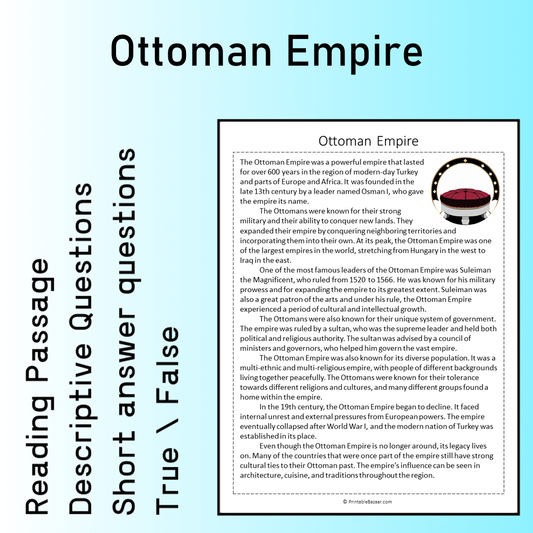 Ottoman Empire | Reading Comprehension Passage Printable Worksheet