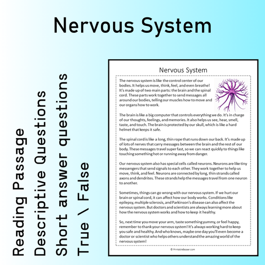 Nervous System | Reading Comprehension Passage Printable Worksheet