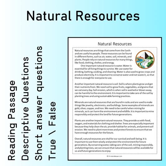 Natural Resources | Reading Comprehension Passage Printable Worksheet