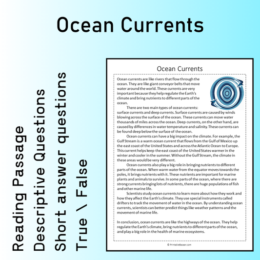 Ocean Currents | Reading Comprehension Passage Printable Worksheet
