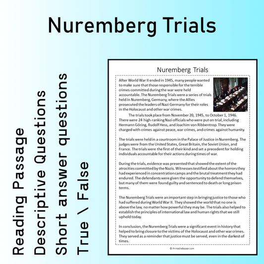 Nuremberg Trials | Reading Comprehension Passage Printable Worksheet