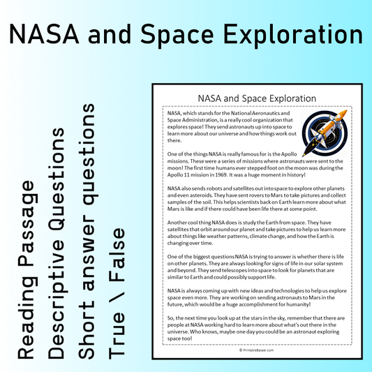 NASA and Space Exploration | Reading Comprehension Passage Printable Worksheet