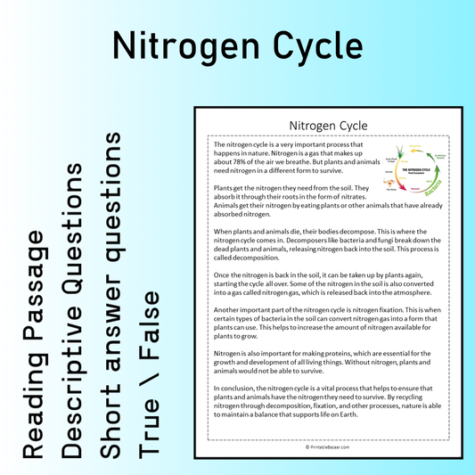 Nitrogen Cycle | Reading Comprehension Passage Printable Worksheet