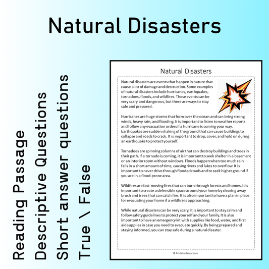 Natural Disasters | Reading Comprehension Passage Printable Worksheet