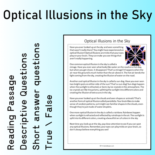 Optical Illusions in the Sky | Reading Comprehension Passage Printable Worksheet