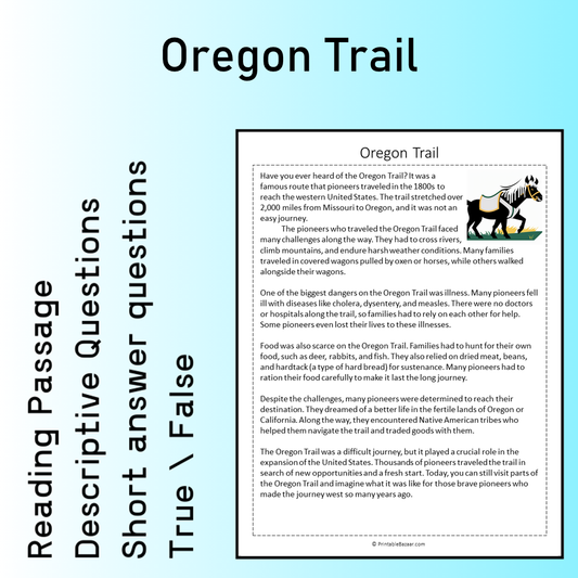 Oregon Trail | Reading Comprehension Passage Printable Worksheet