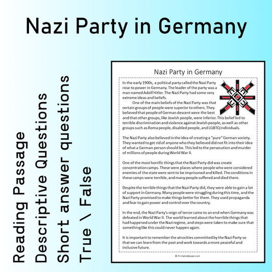 Nazi Party in Germany | Reading Comprehension Passage Printable Worksheet