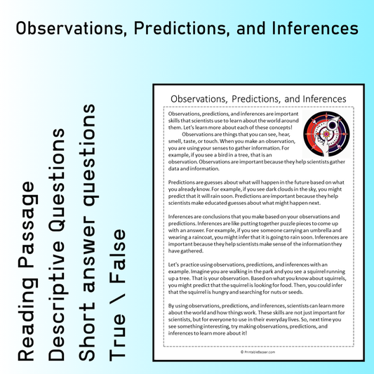 Observations, Predictions, and Inferences | Reading Comprehension Passage Printable Worksheet