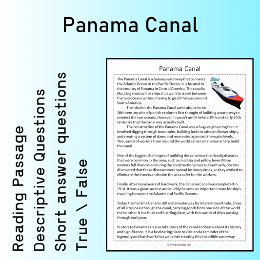 Panama Canal | Reading Comprehension Passage Printable Worksheet