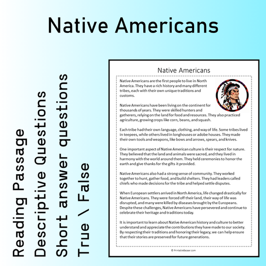 Native Americans | Reading Comprehension Passage Printable Worksheet