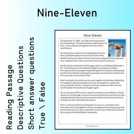 Nine-Eleven | Reading Comprehension Passage Printable Worksheet