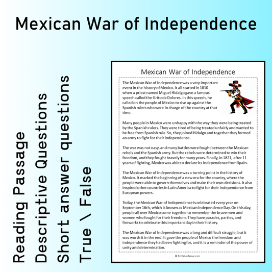 Mexican War of Independence | Reading Comprehension Passage Printable Worksheet