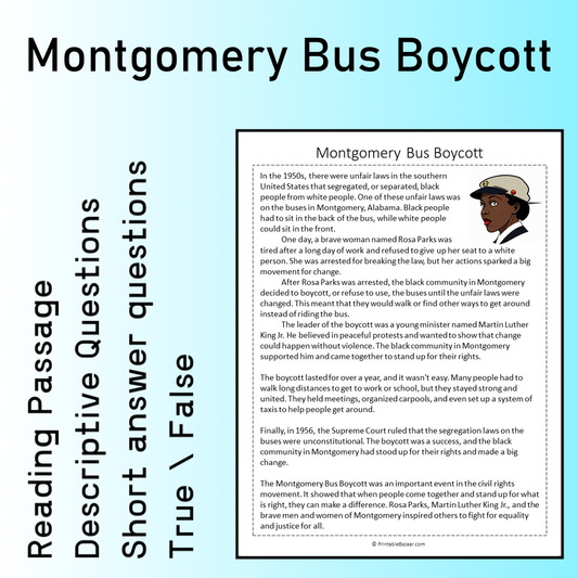Montgomery Bus Boycott | Reading Comprehension Passage Printable Worksheet