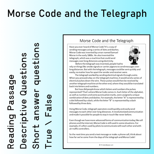 Morse Code and the Telegraph | Reading Comprehension Passage Printable Worksheet