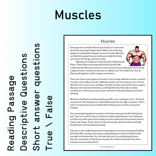Muscles | Reading Comprehension Passage Printable Worksheet