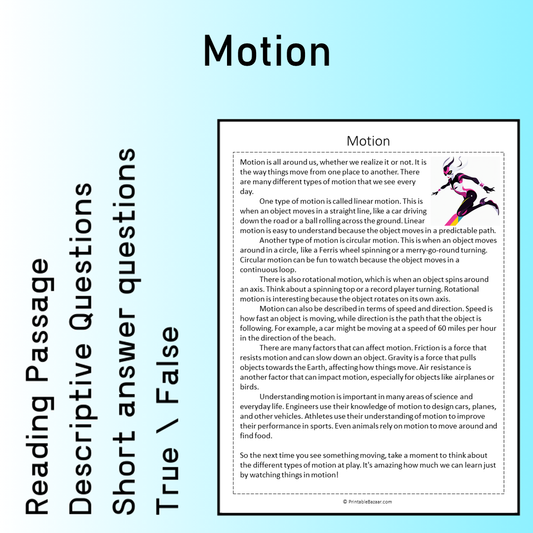 Motion | Reading Comprehension Passage Printable Worksheet