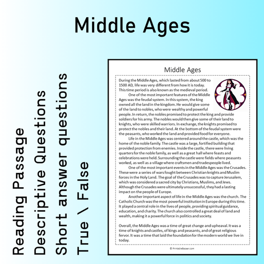 Middle Ages | Reading Comprehension Passage Printable Worksheet