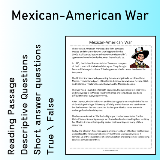 Mexican-American War | Reading Comprehension Passage Printable Worksheet