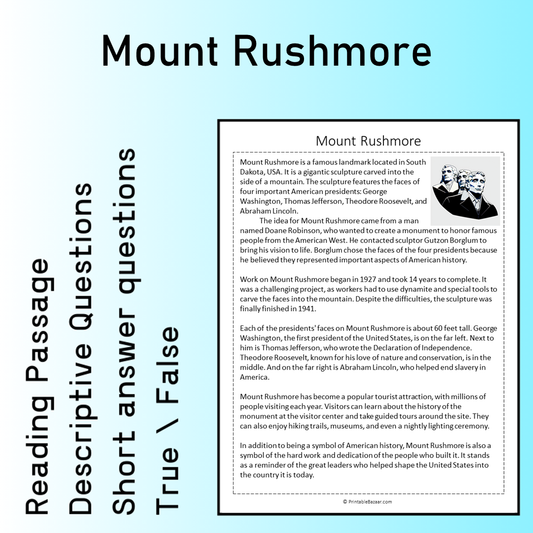 Mount Rushmore | Reading Comprehension Passage Printable Worksheet