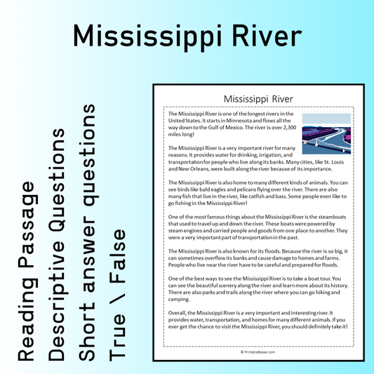 Mississippi River | Reading Comprehension Passage Printable Worksheet