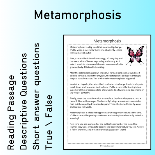 Metamorphosis | Reading Comprehension Passage Printable Worksheet