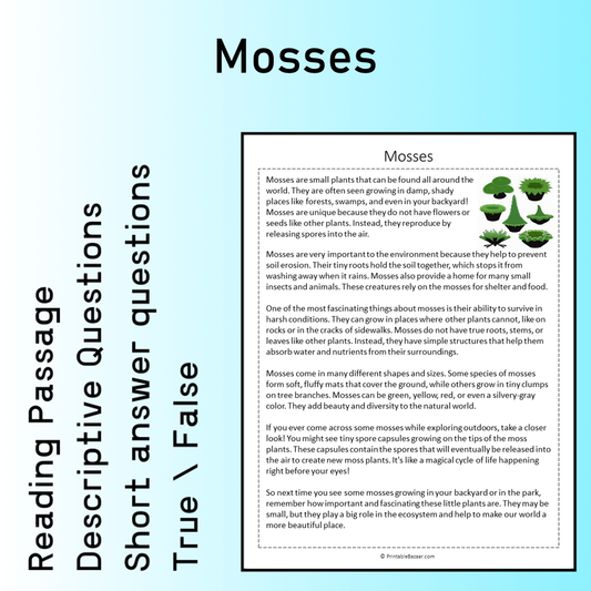 Mosses | Reading Comprehension Passage Printable Worksheet