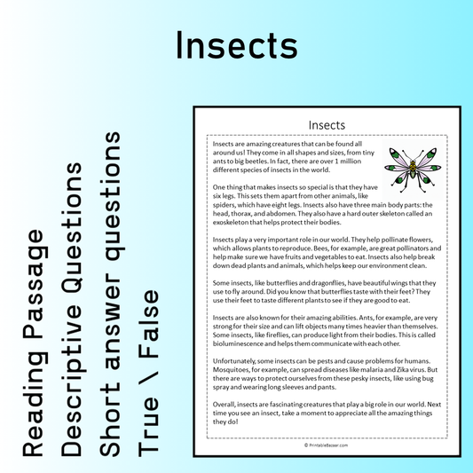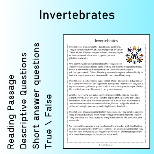Invertebrates | Reading Comprehension Passage Printable Worksheet
