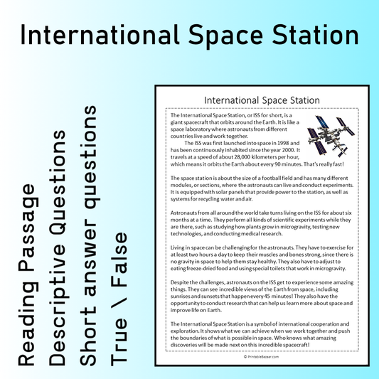 International Space Station | Reading Comprehension Passage Printable Worksheet