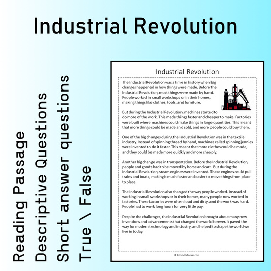 Industrial Revolution | Reading Comprehension Passage Printable Worksheet