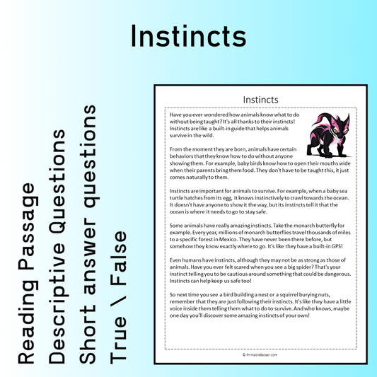 Instincts | Reading Comprehension Passage Printable Worksheet