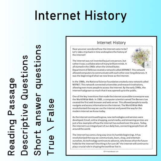 Internet History | Reading Comprehension Passage Printable Worksheet