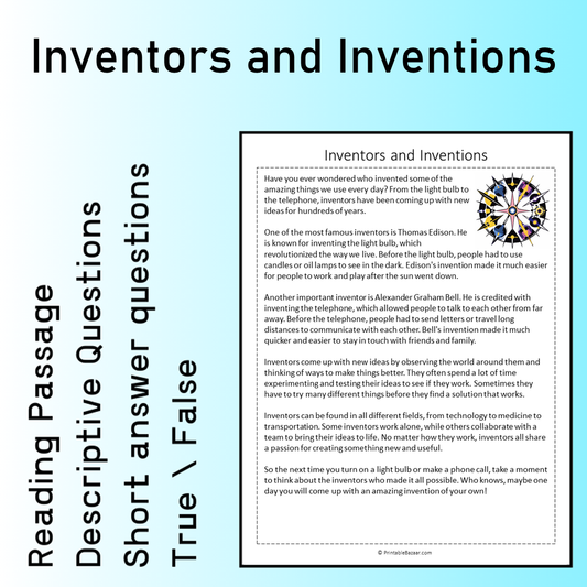 Inventors and Inventions | Reading Comprehension Passage Printable Worksheet