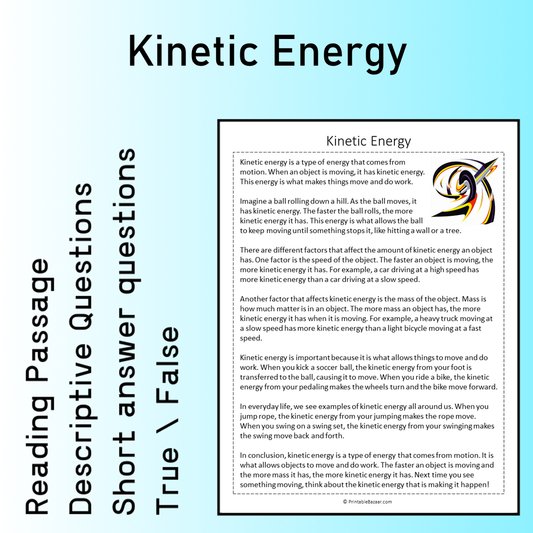 Kinetic Energy | Reading Comprehension Passage Printable Worksheet