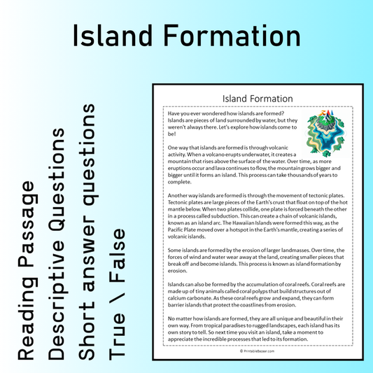 Island Formation | Reading Comprehension Passage Printable Worksheet