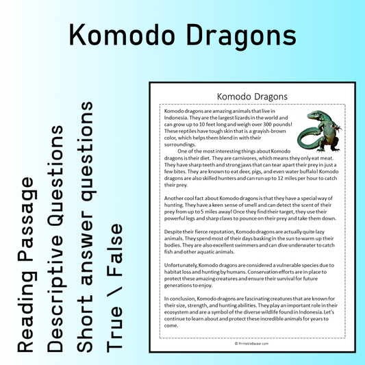 Komodo Dragons | Reading Comprehension Passage Printable Worksheet