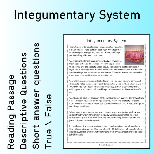 Integumentary System | Reading Comprehension Passage Printable Worksheet