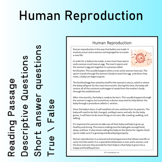 Human Reproduction | Reading Comprehension Passage Printable Worksheet