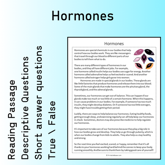 Hormones | Reading Comprehension Passage Printable Worksheet