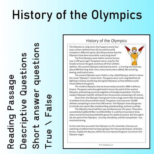 History of the Olympics | Reading Comprehension Passage Printable Worksheet