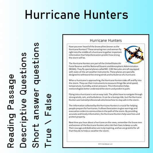 Hurricane Hunters | Reading Comprehension Passage Printable Worksheet