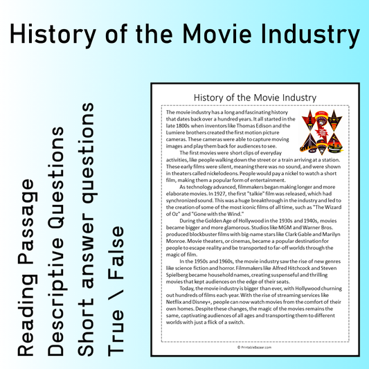 History of the Movie Industry | Reading Comprehension Passage Printable Worksheet