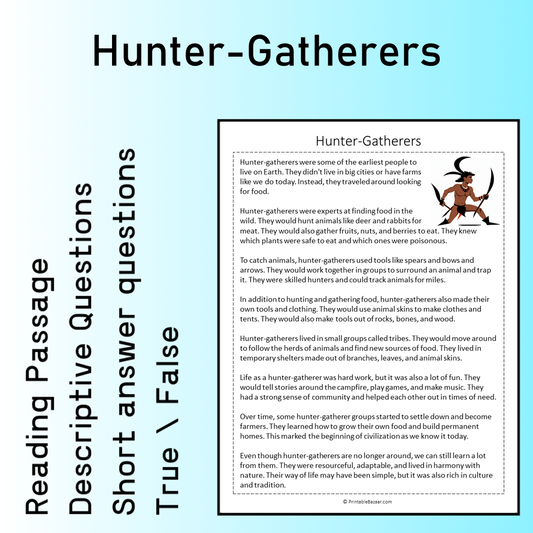 Hunter-Gatherers | Reading Comprehension Passage Printable Worksheet