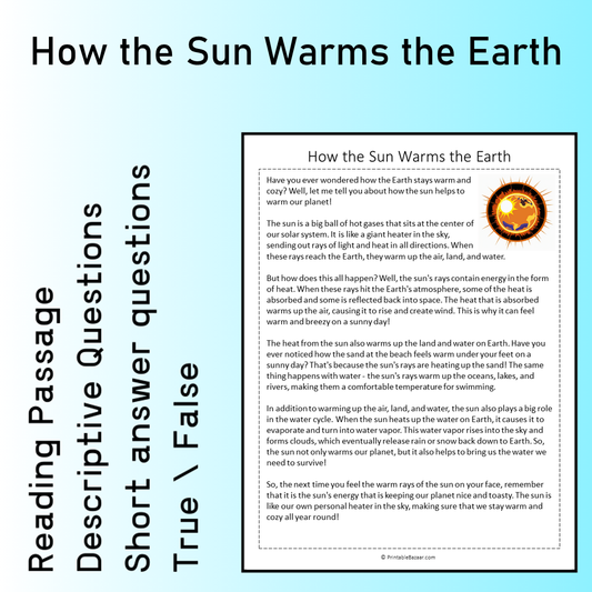 How the Sun Warms the Earth | Reading Comprehension Passage Printable Worksheet