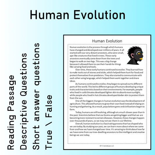 Human Evolution | Reading Comprehension Passage Printable Worksheet