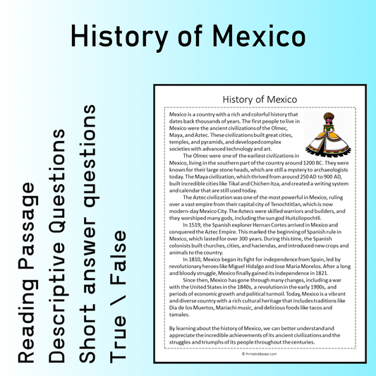History of Mexico | Reading Comprehension Passage Printable Worksheet