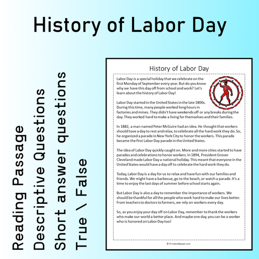History of Labor Day | Reading Comprehension Passage Printable Worksheet
