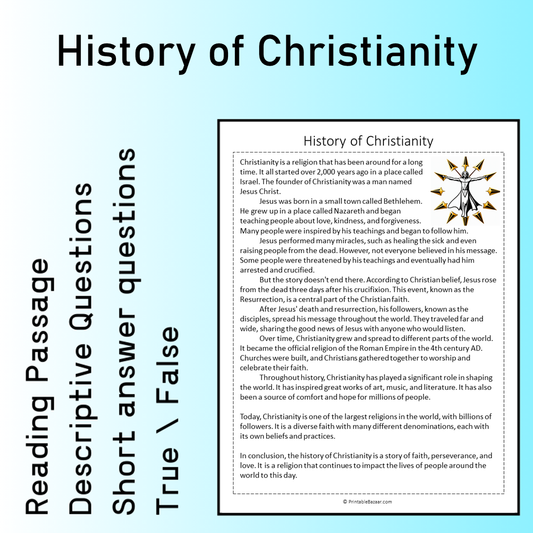 History of Christianity | Reading Comprehension Passage Printable Worksheet