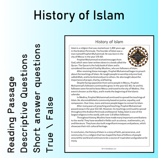 History of Islam | Reading Comprehension Passage Printable Worksheet