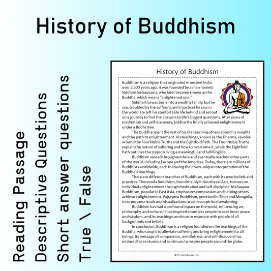 History of Buddhism | Reading Comprehension Passage Printable Worksheet