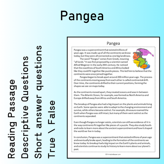 Pangea | Reading Comprehension Passage Printable Worksheet